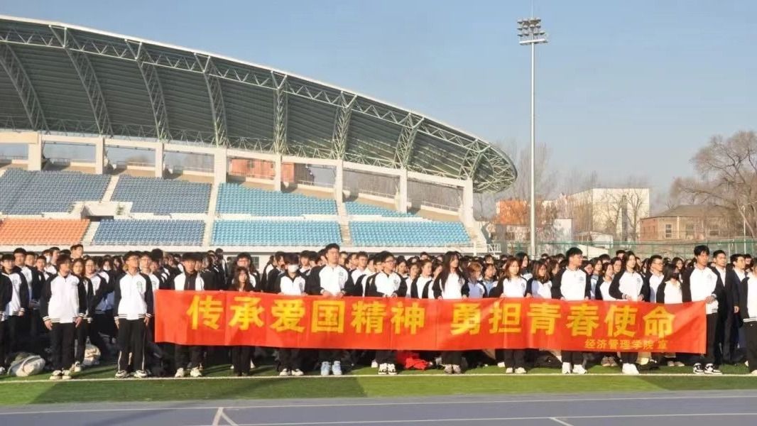于新校区田径场举行“传承爱国精神,勇担青春使命”主题升旗仪式。55足球直播网