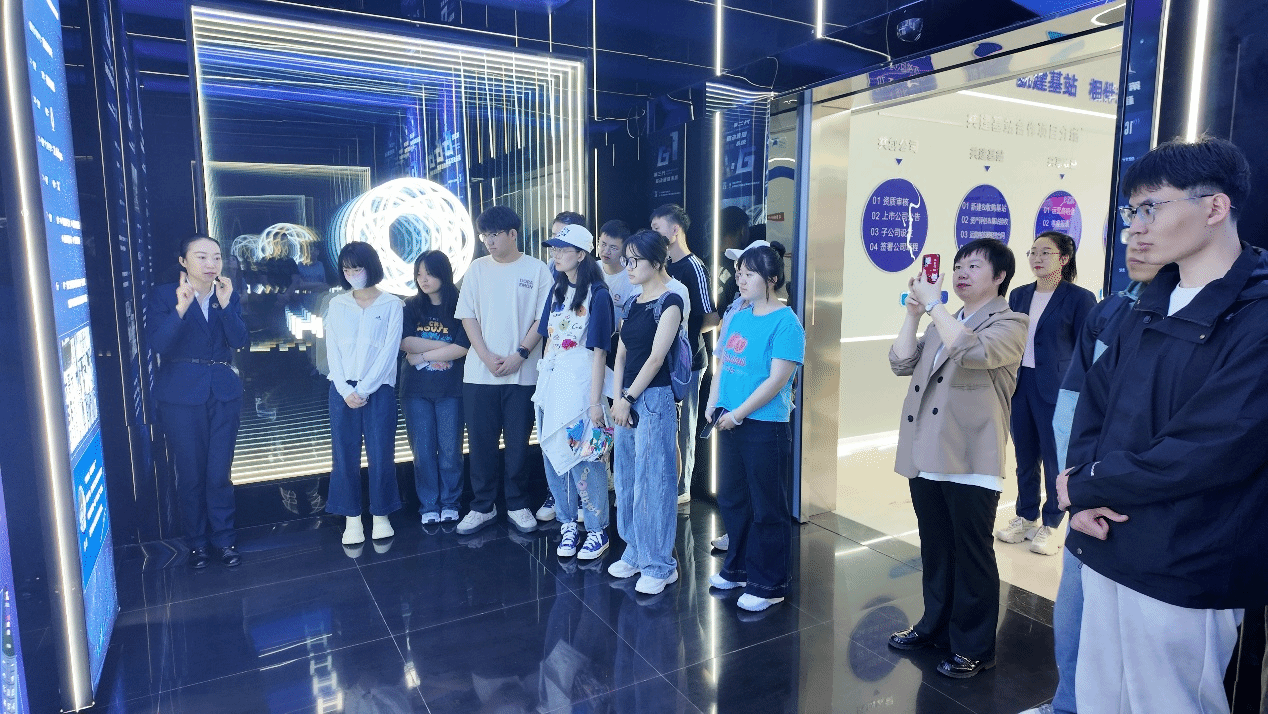 北京航建智慧通信集团股份有限公司成立于2014年,公司是国内领先的4G、5G通信基站建设及运营企业,立足于“成为国内一流的信息通信基础设施服务商”定位,深入推进“以北京为中心,全国业务共发展”的业务发展战略,与中国移动、中国联通、中国电信三大运营商持续进行深度合作,全面打造5G网络全方位覆盖。在集团相关负责人的热情接待和细致讲解下,学生们首先参观了公司的一楼展厅,对公司的发展历程、主营业务以及公司研发的各类智慧基站有了全面的了解。随后,研发部经理为同学们讲解了公司的新能源业务板块最新成果超导数控智能节电系统,还带领同学们进行了6G技术沉浸式体验。最后,技术部经理到户外为同学们实地讲解了基站搭建的原理及流程。