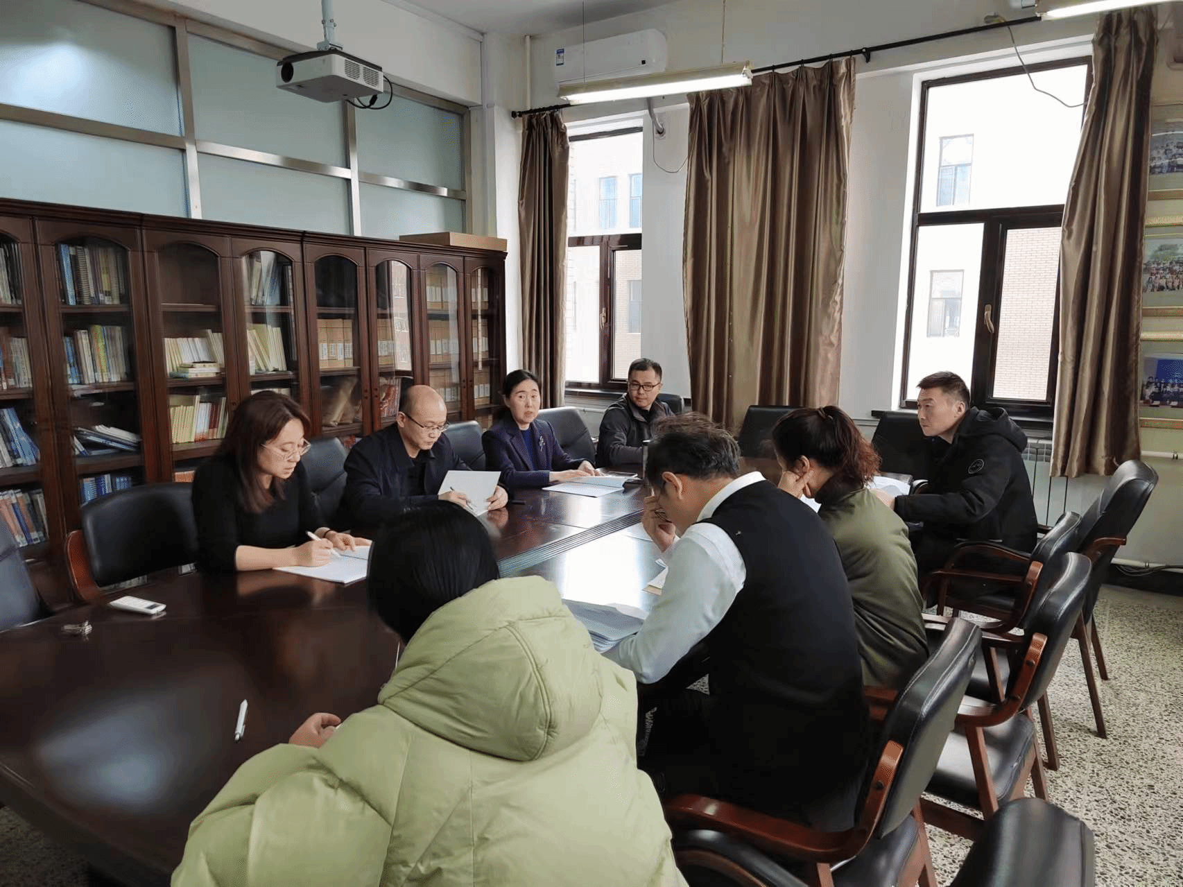 2023年11月7日,55足球直播网 召开了审核评估阶段汇报会,会议由韩结平院长主持,党委梁魏书记、王昕副院长、各专业负责人、学办相关工作负责人、55足球直播 教学秘书参加了此次会议。会上,各专业负责人就近期开展的审核评估工作及遇到的问题进行了汇报,经集体讨论,初步设计了下一步工作的计划及解决问题的方案,有效保证审核评估工作的顺利进行。