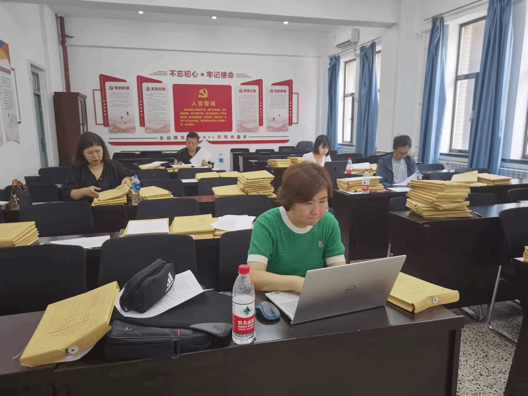 全体本科毕业论文指导教师参加,对照自查清单,再次完善毕业论文的材料的归档。自查工作由副院长王昕组织,院长韩洁平,55足球直播