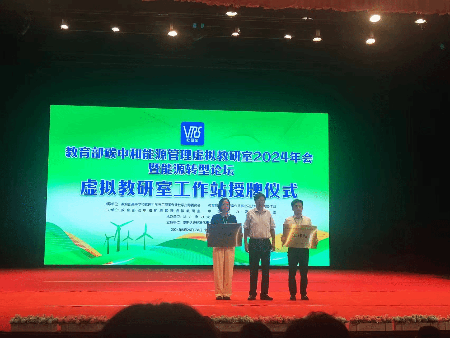大赛同时举办了教育部碳中和能源管理虚拟教研室2024年会既能源转型论坛,论坛开幕式上为我校举行了虚拟教研室工作站授牌仪式。通过参加本次大赛暨年会,对于引领碳中和教育事业前行,共同推进国家“双碳”战略和教育强国战略具有重要意义。