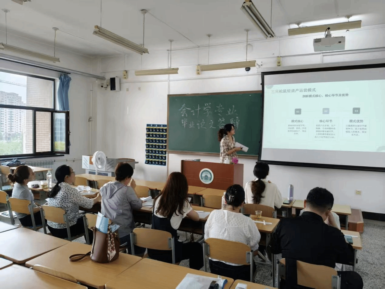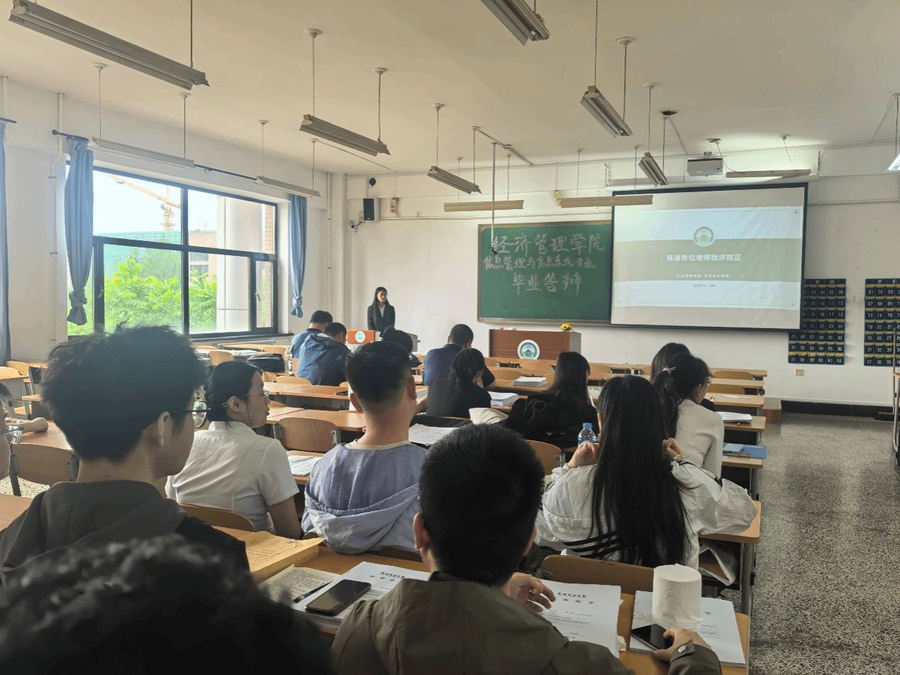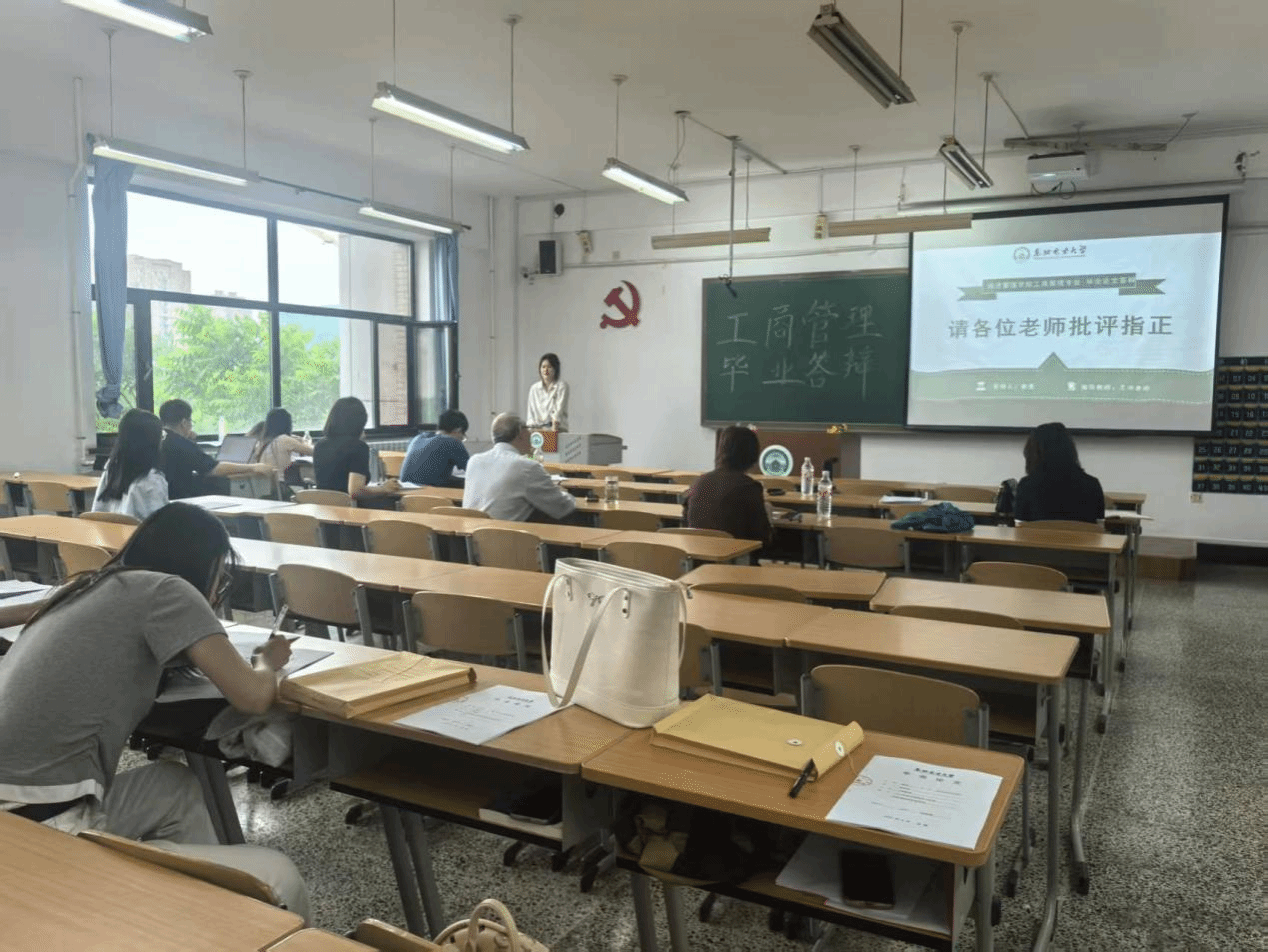 学生围绕各自的论文主题,通过ppt汇报,从论文的研究背景、主要思路、基本理论、研究方法及案例应用等方面进行阐述,答辩组老师根据论文的内容进行提问,并指出存在的问题,提出改进建议。