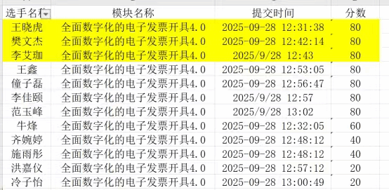 比赛过程中,各参赛队员通过模拟真实企业环境下的税务工作流程,全面完成了税务登记、发票开具、纳税申报、账务处理等核心任务。熟练掌握全面数字化的电子发票(数电票)开具等关键技能,依据业务场景完成智能化的税务处理。最终,竞赛平台依据每个选手的操作准确性、效率及合规性等关键评分项目进行系统评分。
